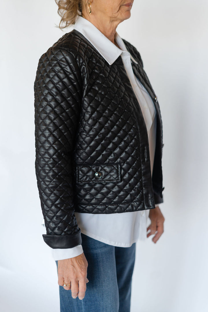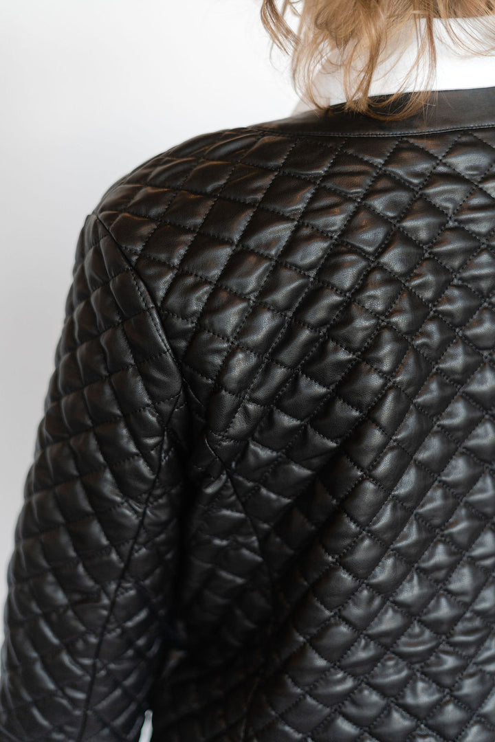 AURELLE QUILTED VEGAN LEATHER JACKET-BLACK