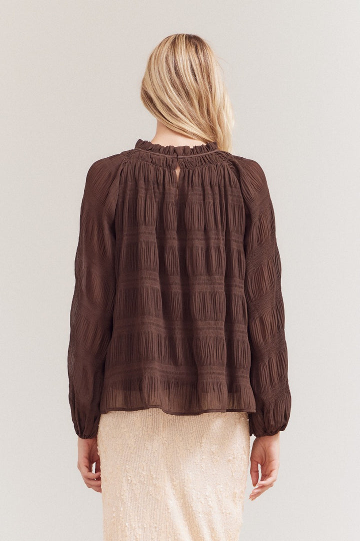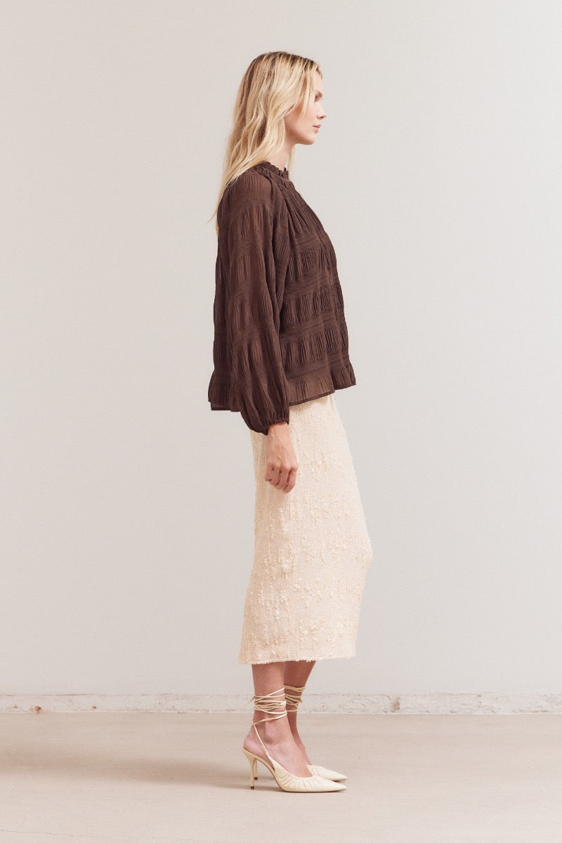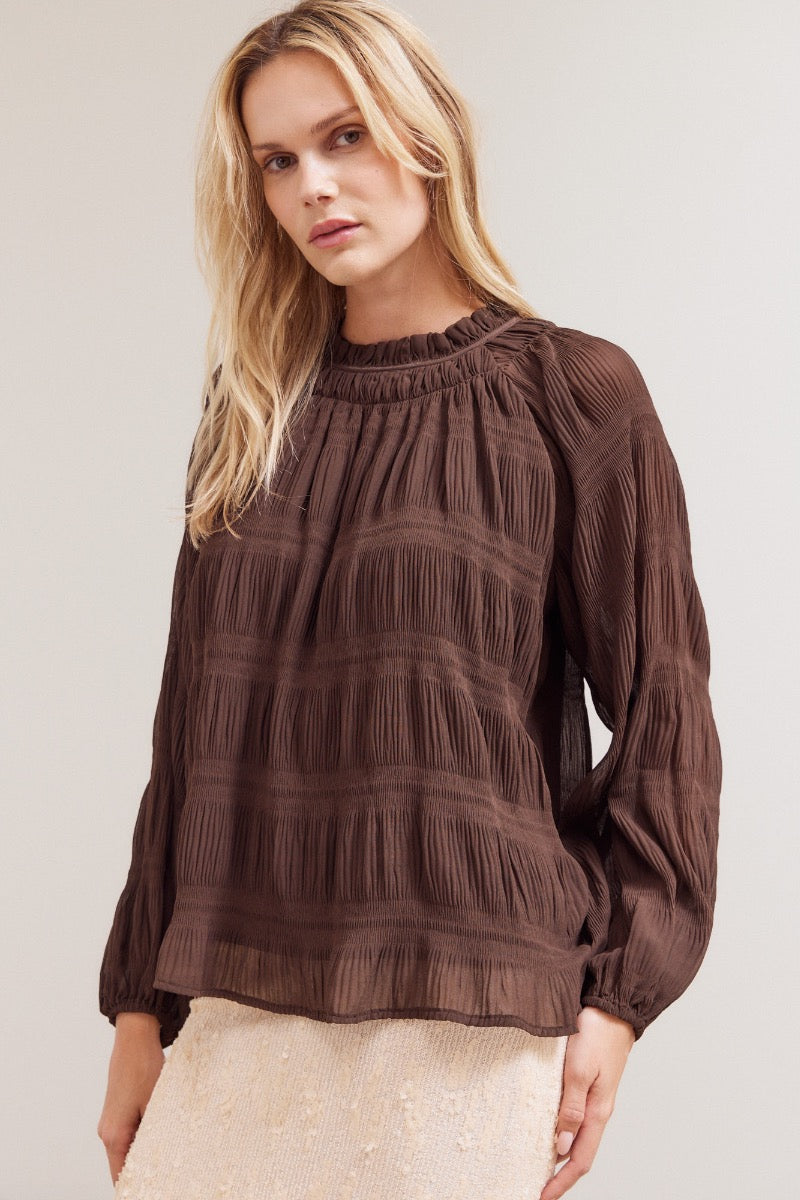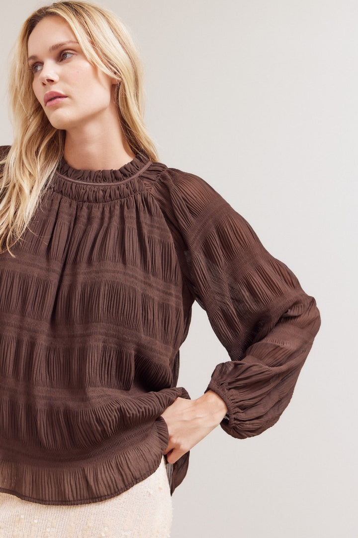 Introducing our elegant BALLOON SLEEVE BLOUSE TOP in classic ivory and chocolate. This sophisticated top features on-trend balloon sleeves, adding a touch of drama to any outfit. Crafted with quality materials, this blouse is not only stylish but also comfortable and durable. Enhance your wardrobe with this must-have piece.
