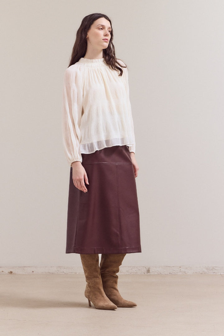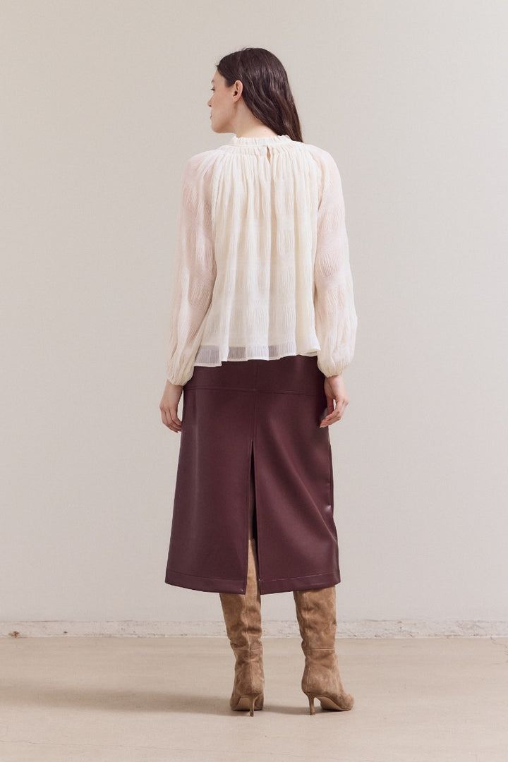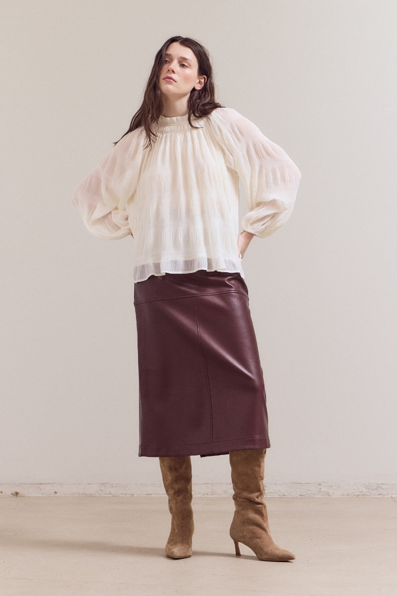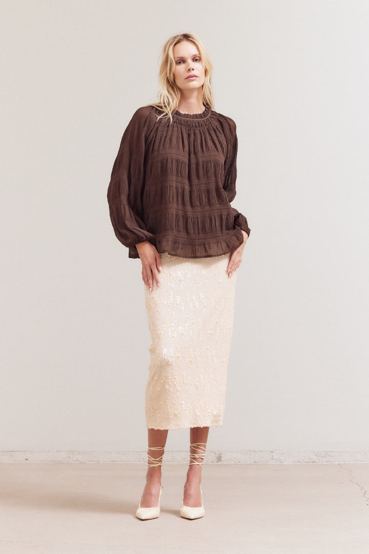 Introducing our elegant BALLOON SLEEVE BLOUSE TOP in classic ivory and chocolate. This sophisticated top features on-trend balloon sleeves, adding a touch of drama to any outfit. Crafted with quality materials, this blouse is not only stylish but also comfortable and durable. Enhance your wardrobe with this must-have piece.