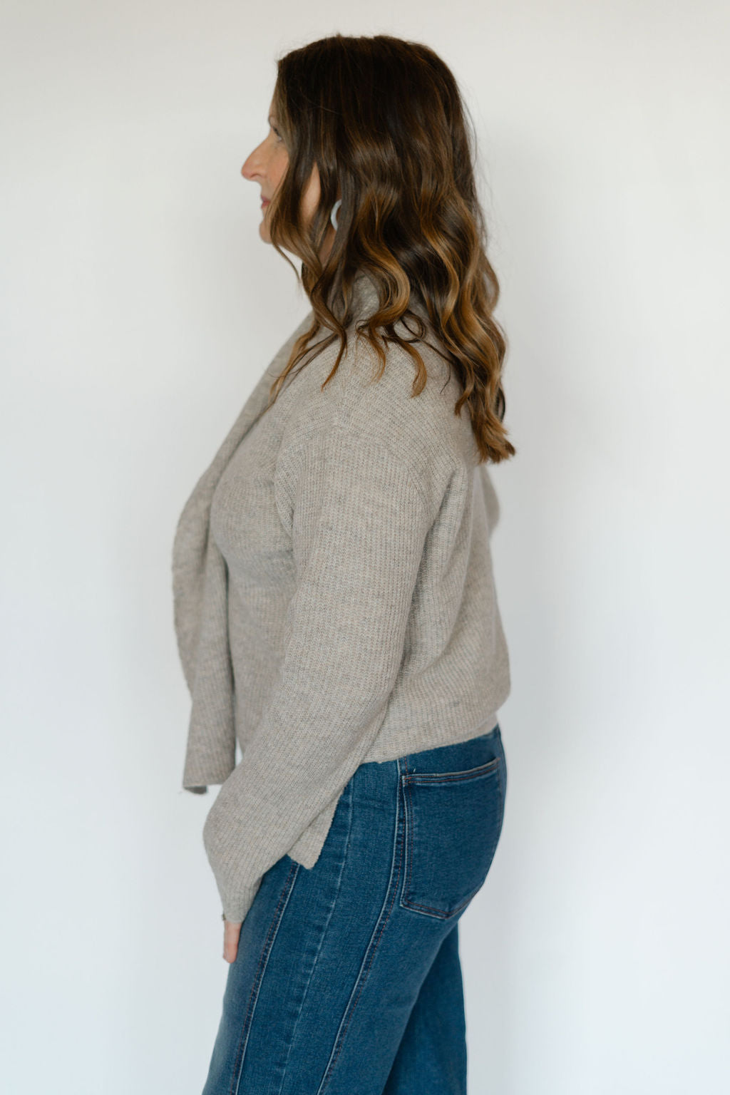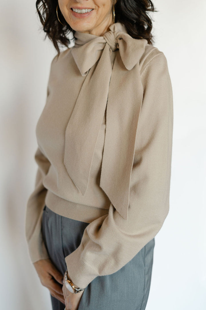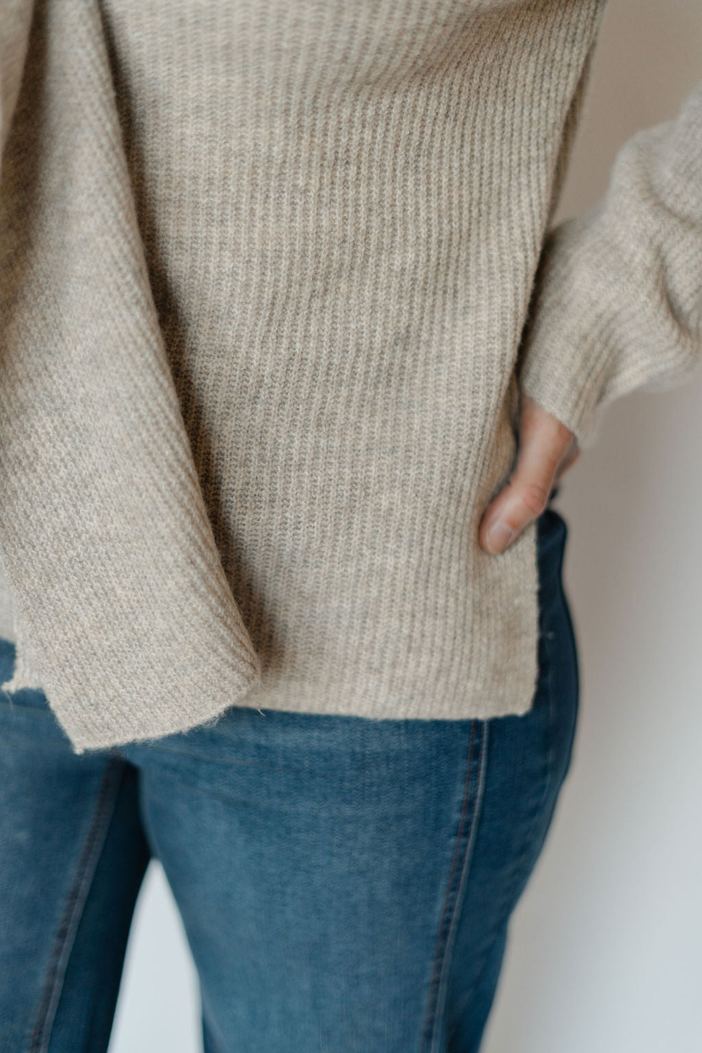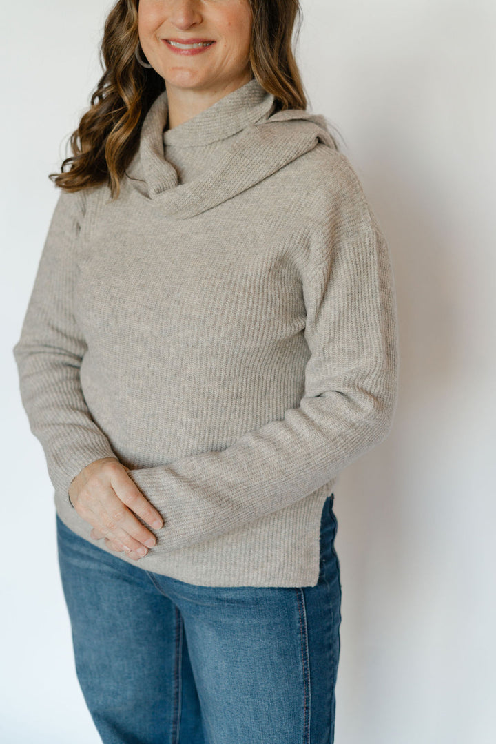 Crafted from soft ribbed fabric, the DARCEY SWEATER-FEATHER TAUPE features a flattering turtleneck design and a unique wrap-around scarf detail. This versatile piece adds effortless style to any outfit, making it a must-have for any fashion-forward wardrobe.