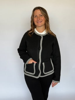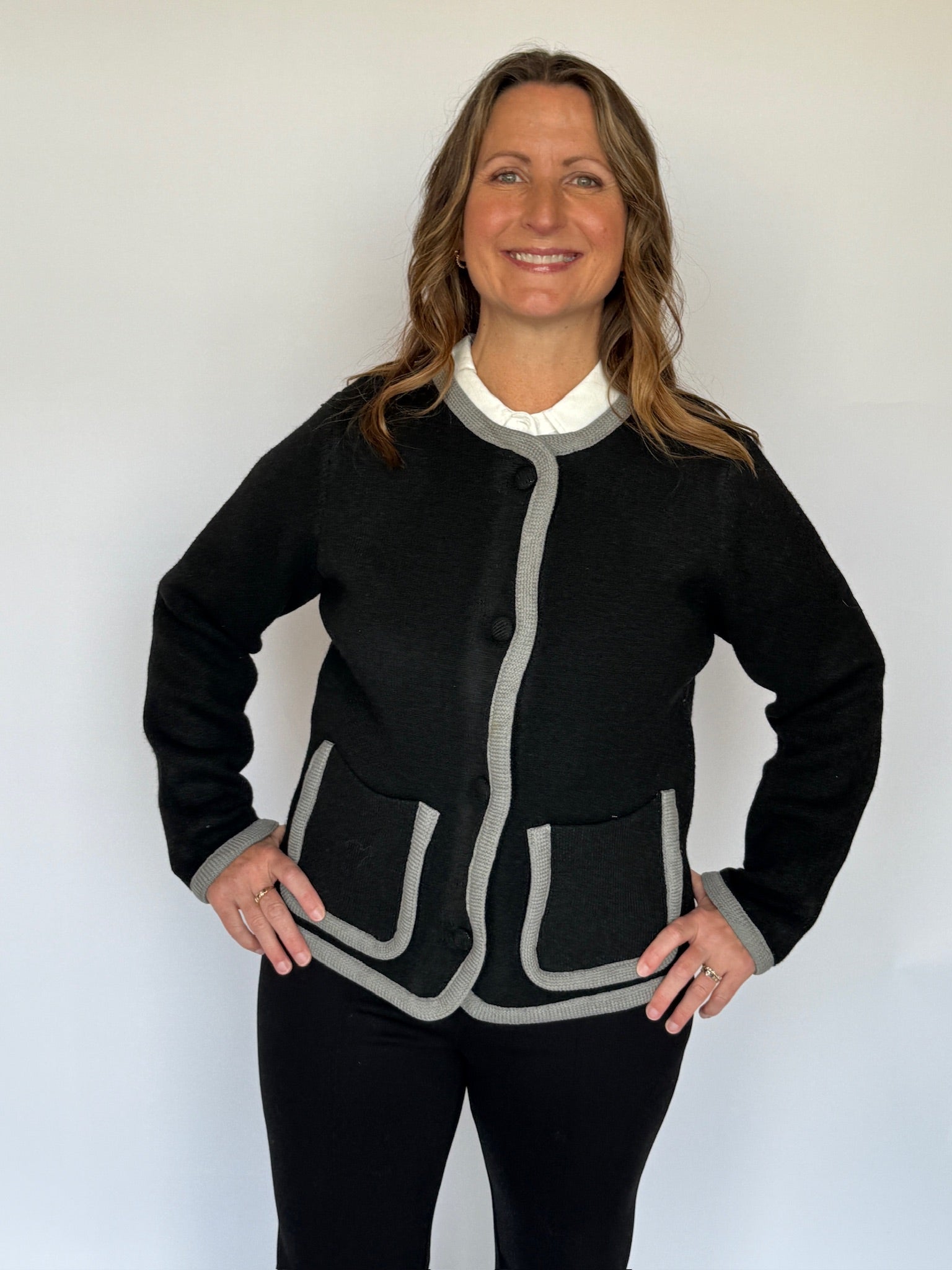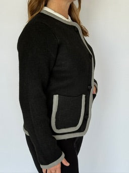Expertly crafted with a short cardigan design, the DEL REY SWEATER is a stylish choice for any outfit. The delicate buttons add a touch of elegance, while the contrasting colors of black and grey or camel and brown add a modern twist. Stay warm and chic with this must-have wardrobe staple.