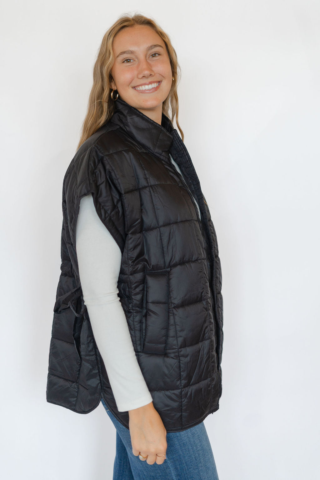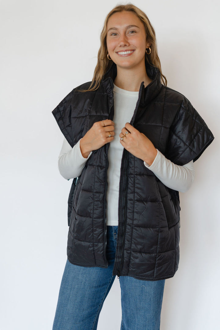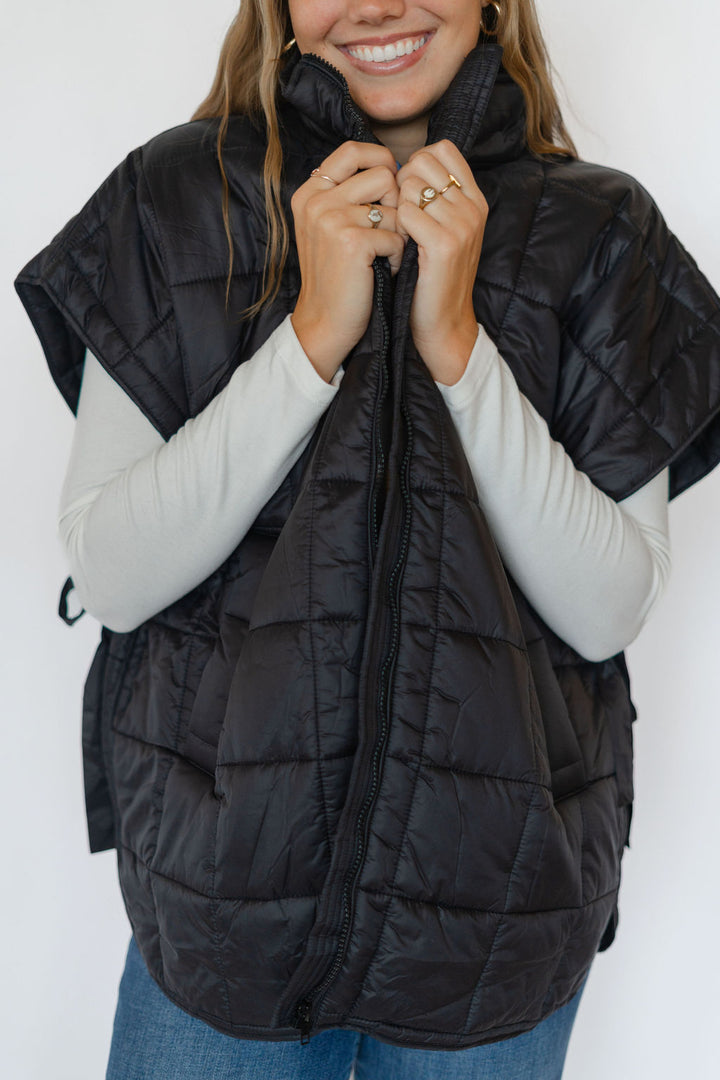 Stay warm and stylish with our High Neck Padded Vest. Featuring a zip-up quilted design, this vest offers both insulation and comfort. Perfect for colder days, this vest is a must-have for any wardrobe. Available in black to easily match any outfit.