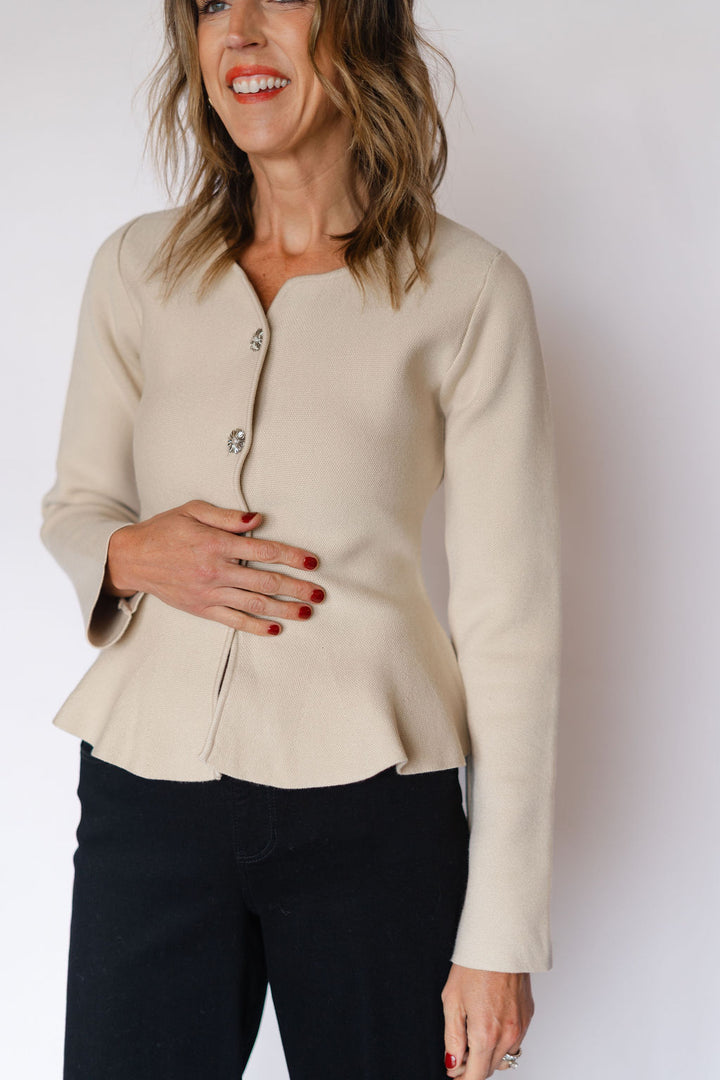 Elevate your style effortlessly with the IdaH Cardigan in beige, featuring distinctive accent buttons that add a subtle touch of sophistication. This versatile piece blends comfort and elegance, making it perfect for layering over your favorite outfits. Its neutral shade ensures easy pairing, while the carefully crafted buttons draw attention to your refined taste. Upgrade your wardrobe with a timeless cardigan designed to keep you cozy and chic from day to night.