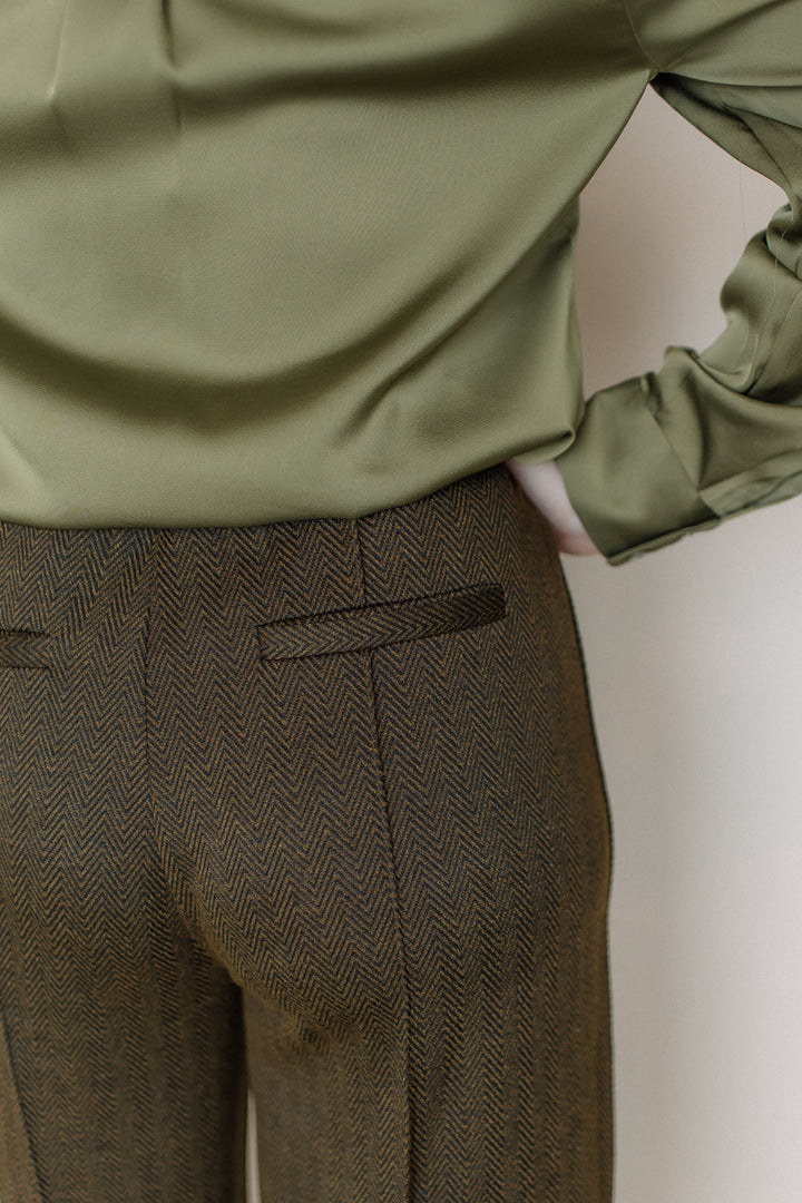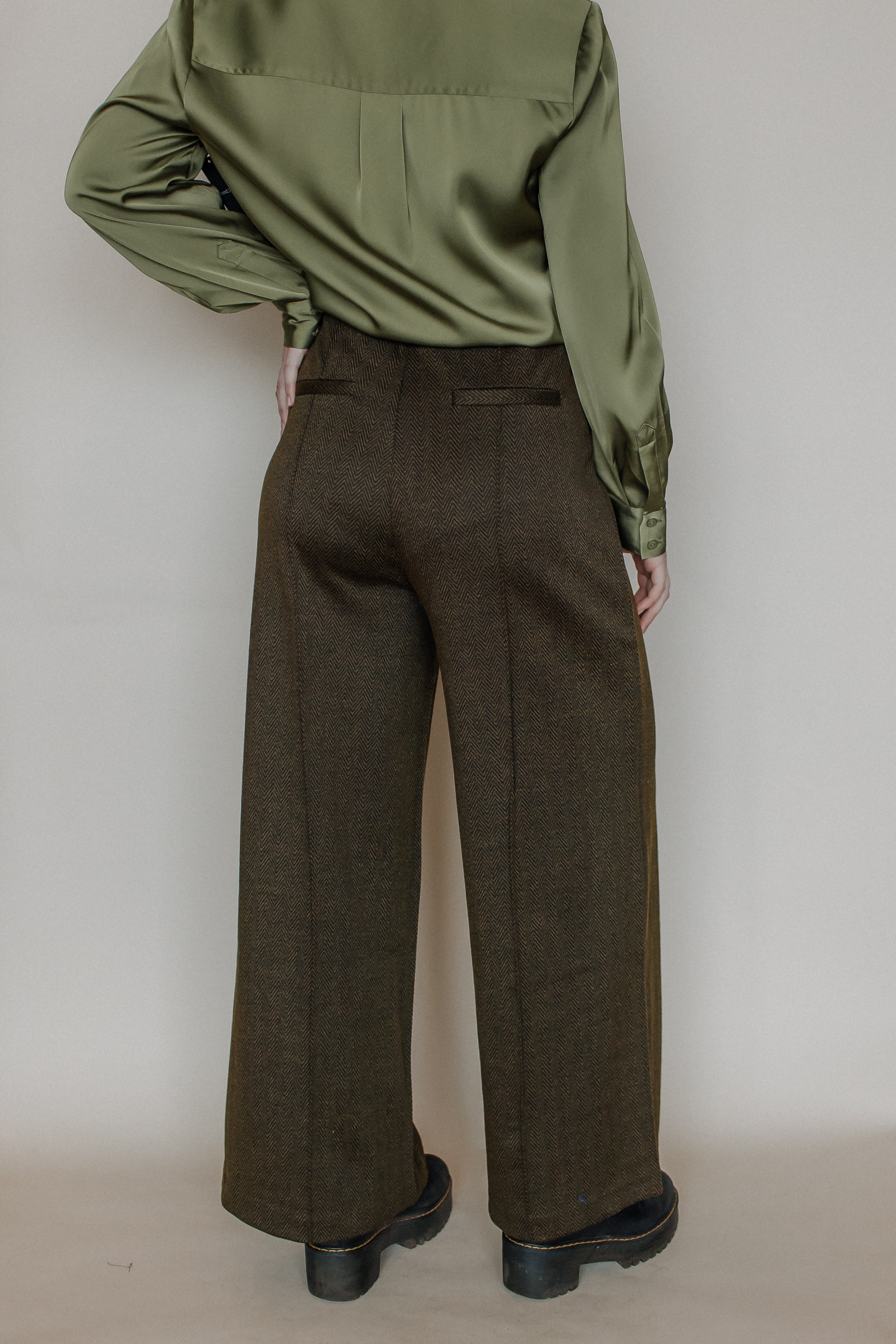 The Kate Pants offer a chic blend of comfort and style with their brown and black herringbone pattern. Designed with a wide-leg silhouette and a convenient pull-on waistband, these pants provide a relaxed yet polished look perfect for any occasion. Experience effortless elegance and all-day comfort in a versatile piece that elevates your everyday wardrobe.