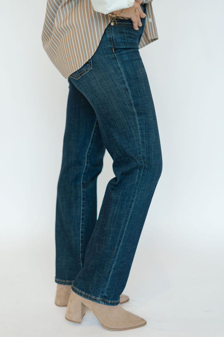 Discover the perfect blend of classic style and comfortable fit with the Kennedy Straight-Eastmoor jeans. Featuring a timeless straight leg design and a 30" inseam, these dark wash denim pants in the distinctive Eastmoor color offer versatility for any occasion. Crafted for durability and flattering wear, they easily pair with your favorite tops and shoes to elevate your everyday wardrobe. Embrace effortless confidence in a pair of jeans designed to move with you and showcase your personal style.