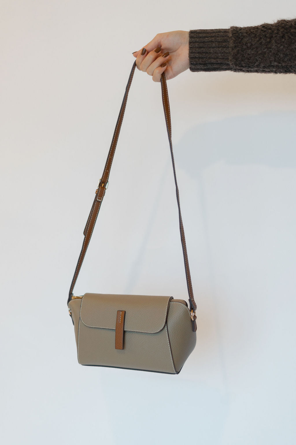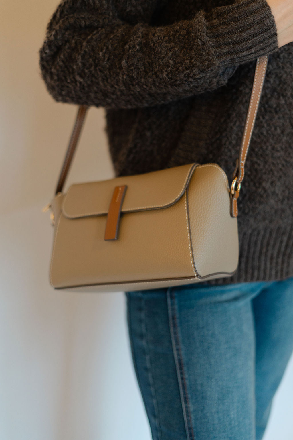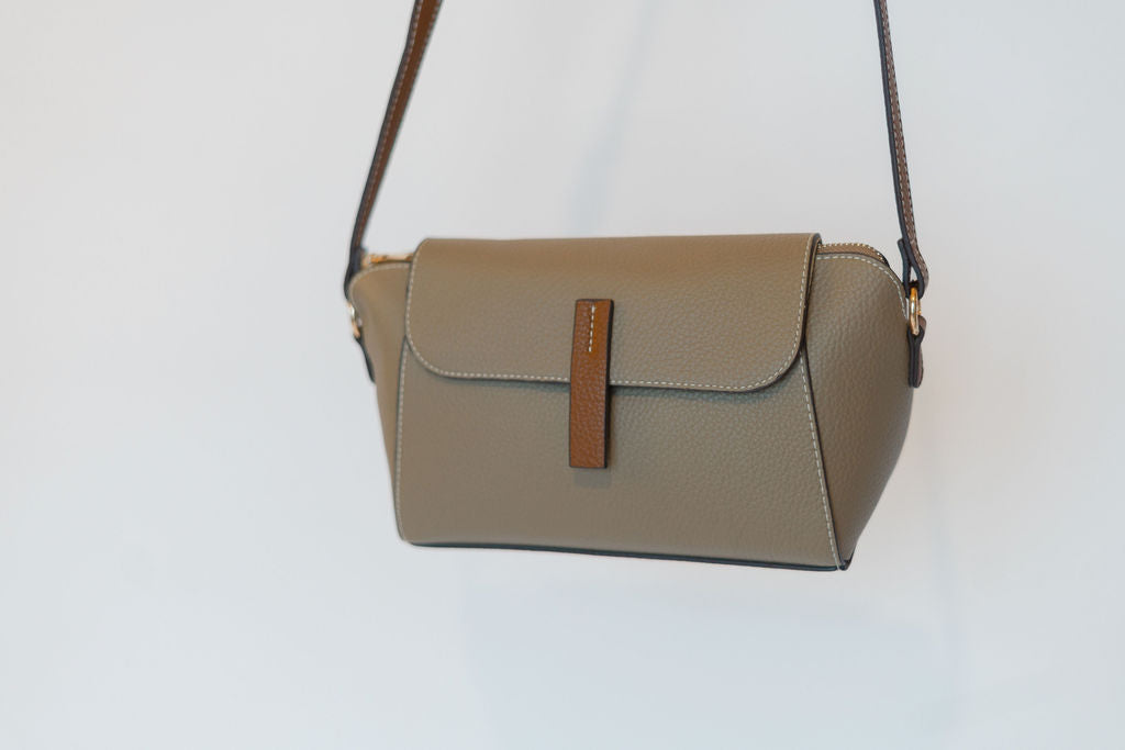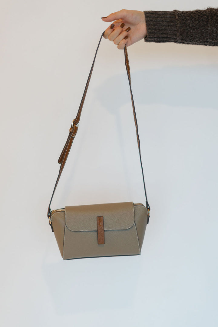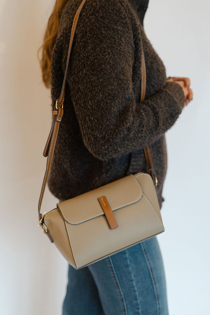 Elevate your style with the Marcella Shoulder Bag, a chic light taupe purse accented by a camel snap detail. Crafted from faux leather, it combines elegance with cruelty-free durability. The adjustable shoulder strap allows comfortable crossbody wear, keeping your essentials close and hands free. Perfect for everyday use or special occasions, this compact bag pairs effortlessly with any outfit while offering practical, stylish convenience.
