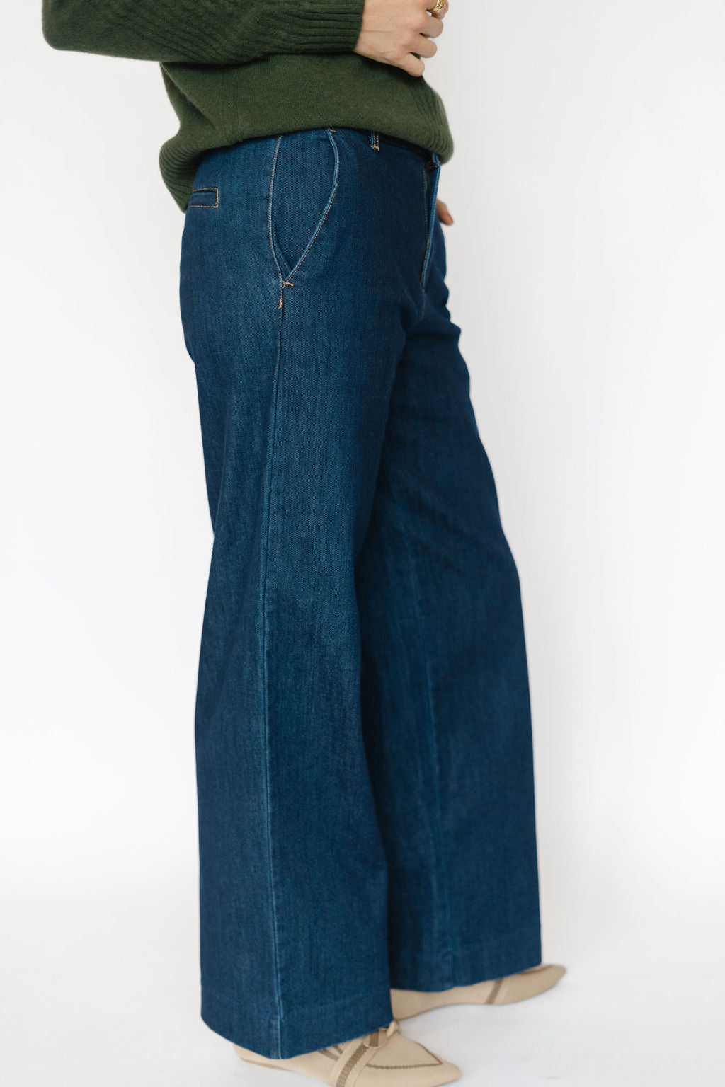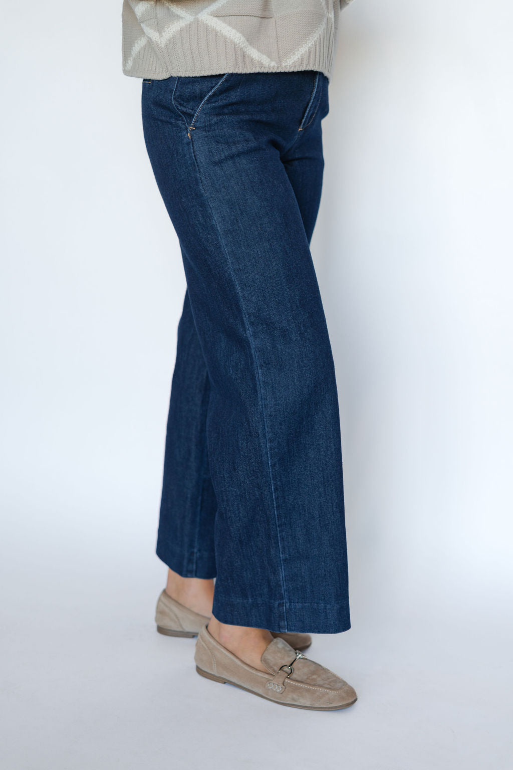 Elevate your wardrobe with the Maria Trouser in Rinse Wash. These high-rise, wide-leg trousers offer a flattering silhouette that combines comfort and style effortlessly. The rinse wash finish adds a subtle, sophisticated touch, making them perfect for both casual and polished looks. Designed to enhance your confidence, these trousers are a versatile addition that pairs seamlessly with your favorite tops and shoes. Step out in style and experience the perfect blend of modern fashion and timeless appeal.