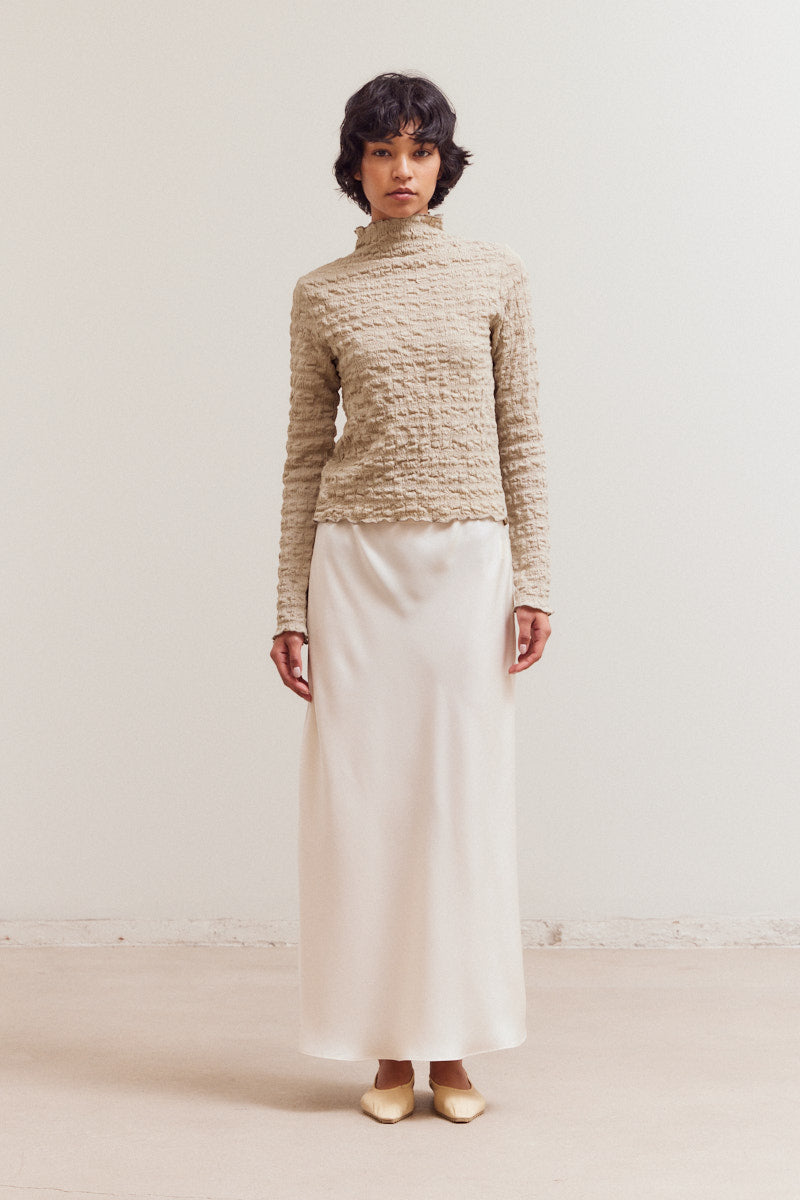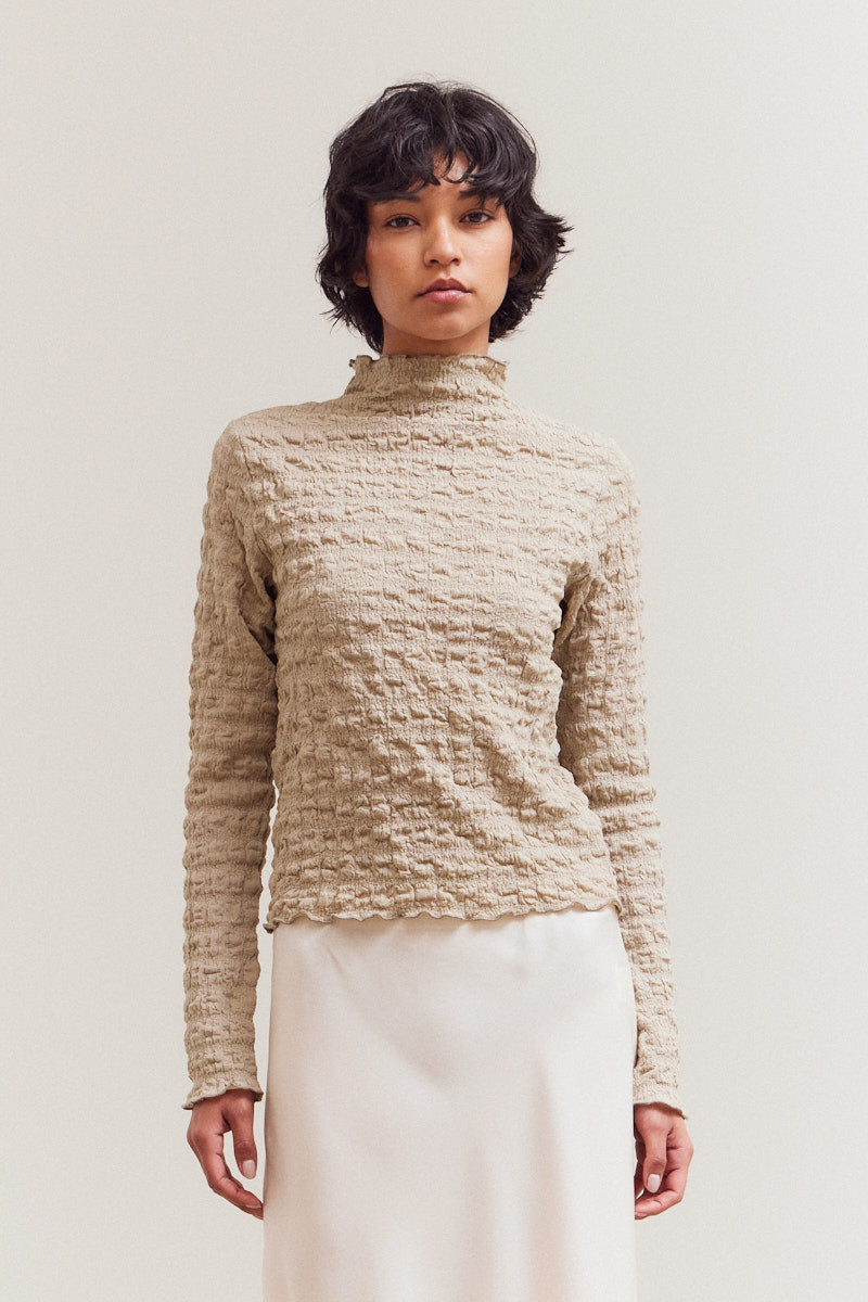 Elevate your wardrobe with the Milani Top in soothing sage. This seered mock neck long sleeve design offers a flattering fit and subtle texture, perfect for layering or wearing on its own. Its versatile style effortlessly transitions from casual days to polished evenings, making it a must-have staple for any season.