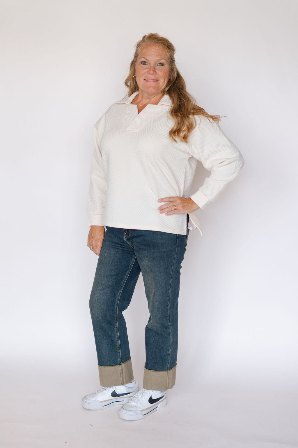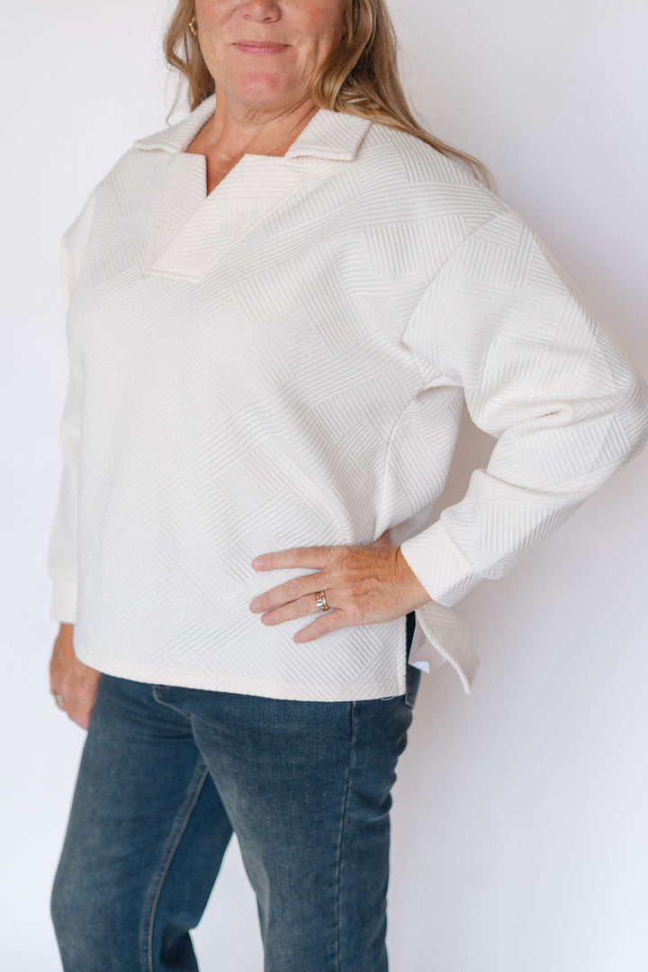 Elevate your wardrobe with the Murphy Top, a long sleeve textured collared shirt in a versatile cream shade. Crafted to deliver both comfort and style, its subtle texture adds depth to your look while the structured collar ensures a polished finish. Perfect for layering or wearing solo, this top effortlessly transitions from casual days to smart occasions, making it a timeless staple you’ll reach for again and again.