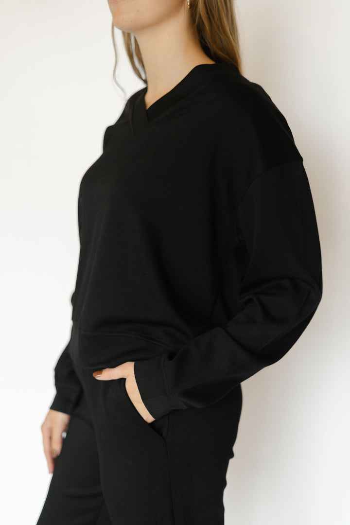 Experience ultimate comfort and style with our P. CILL BUTTER MODAL V NECK LONG SLEEVE PULLOVER TOP. Made with buttery soft modal fabric, this top provides luxurious feel and flattering drape. Its V-neck and long sleeves create a timeless look, available in three versatile colors - black, ivory, and taupe. Upgrade your wardrobe today with this must-have piece.