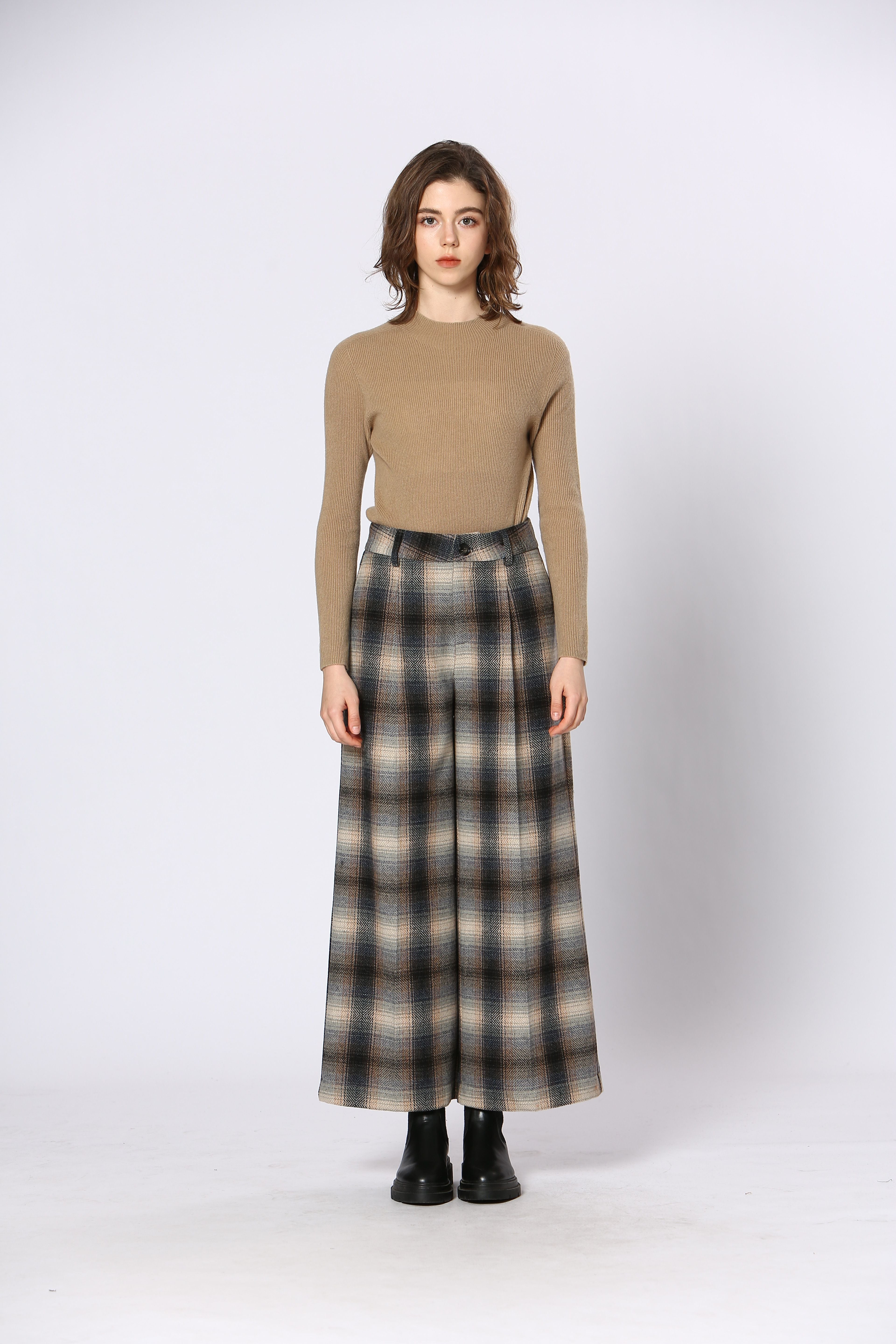 These PLAID PANT-BLUE trousers feature a stylish PLEATED WIDE LEG design with a striking BLUE/BROWN/CREAM PLAID PATTERN. Made with high-quality materials and expert tailoring, they provide a comfortable and fashionable fit, perfect for any occasion. Elevate your wardrobe with these sophisticated pants.