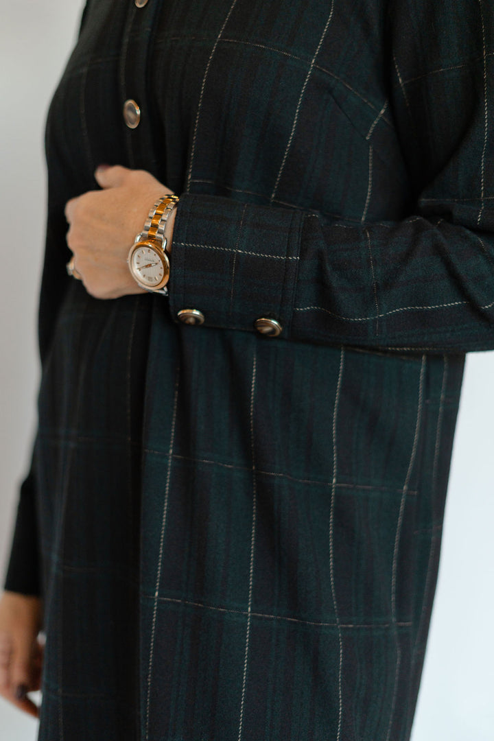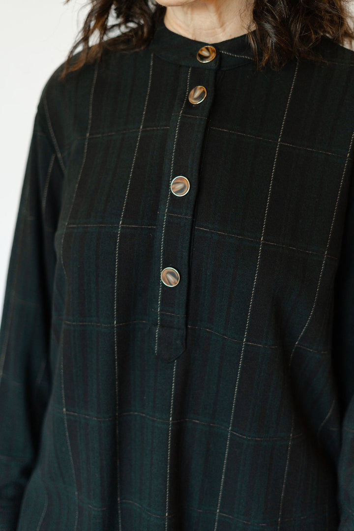 Discover the Raelynn Dress/Tunic in black, designed with long sleeves and four elegant buttons for a refined look. This versatile piece offers effortless style and comfort, perfect for dressing up or down. Its flattering silhouette makes it an essential addition to any wardrobe, ideal for both workdays and weekend outings.