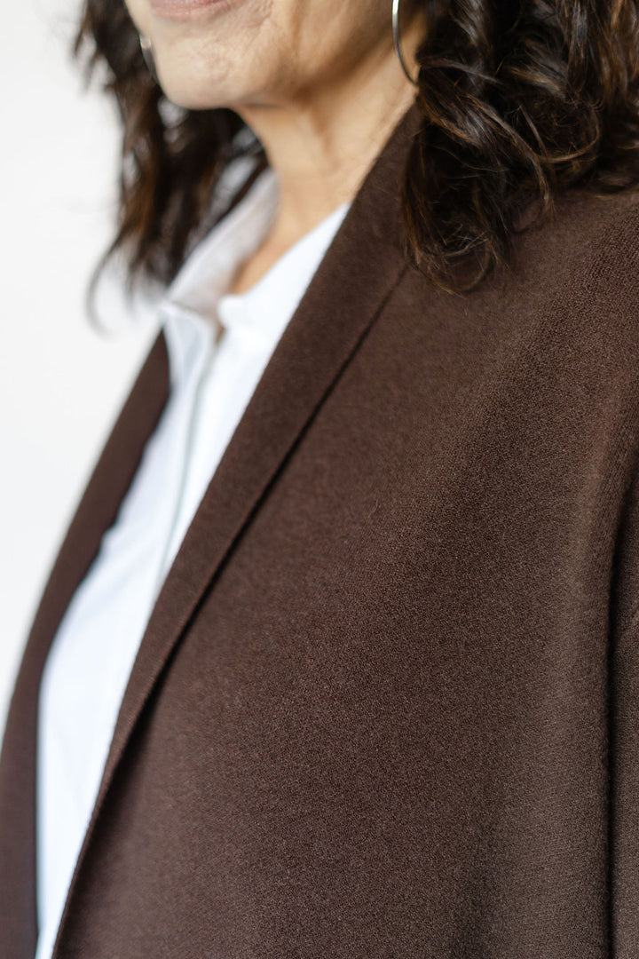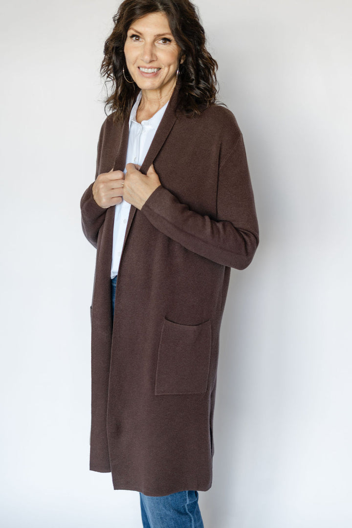 Wrap yourself in cozy sophistication with the Ryleigh Cardigan in rich espresso brown. This long cardigan features convenient front pockets, perfect for keeping essentials close or warming your hands. Its versatile design effortlessly complements any outfit, making it an ideal layering piece for cooler days. Experience comfort and style combined in one timeless wardrobe staple.
