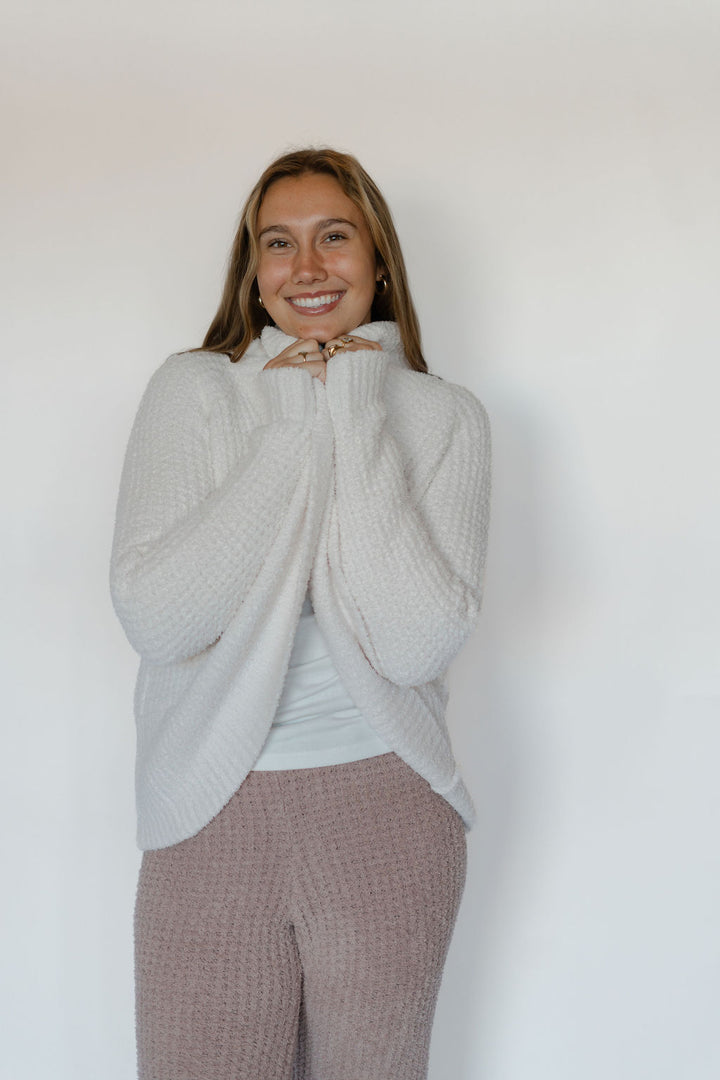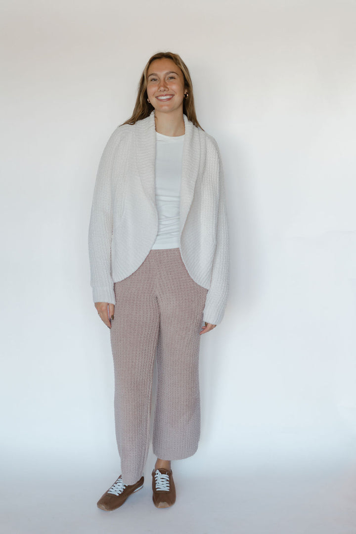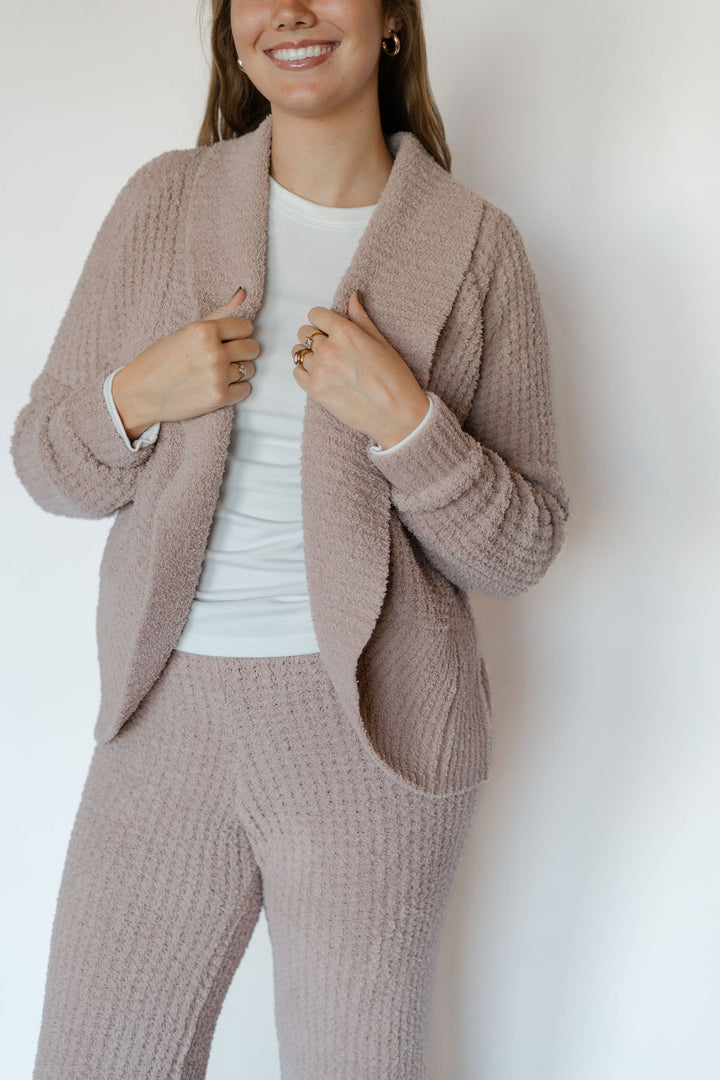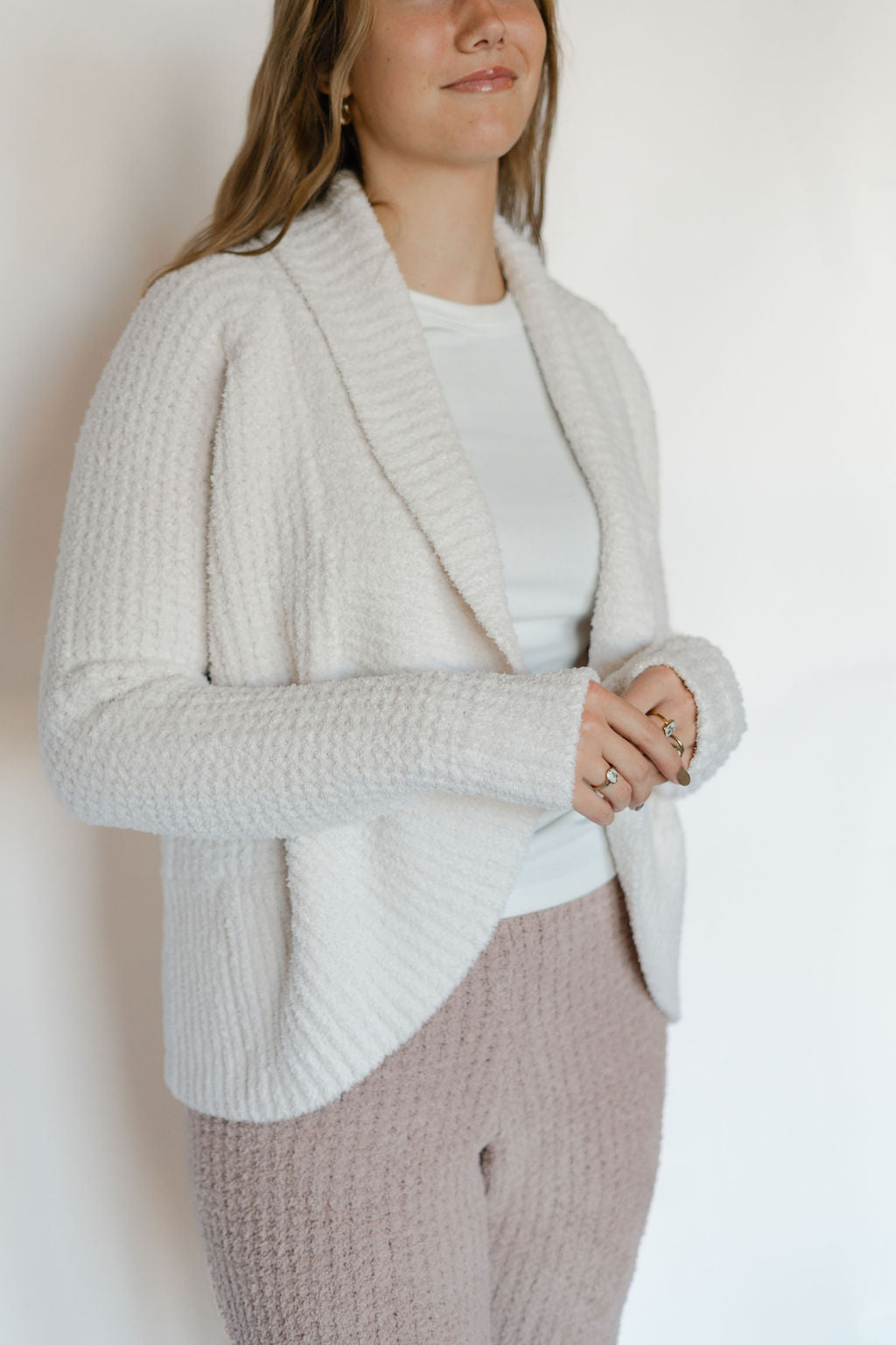Introducing the SOFTIES WAFFLE MARSHMALLOW COCOON CARDIGAN, available in both almond and coco colors. Made with soft waffle material, this cardigan offers ultimate comfort and style. Stay cozy in this fashionable cardigan, perfect for any occasion.