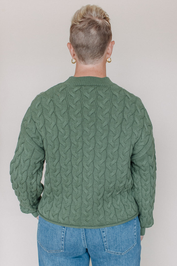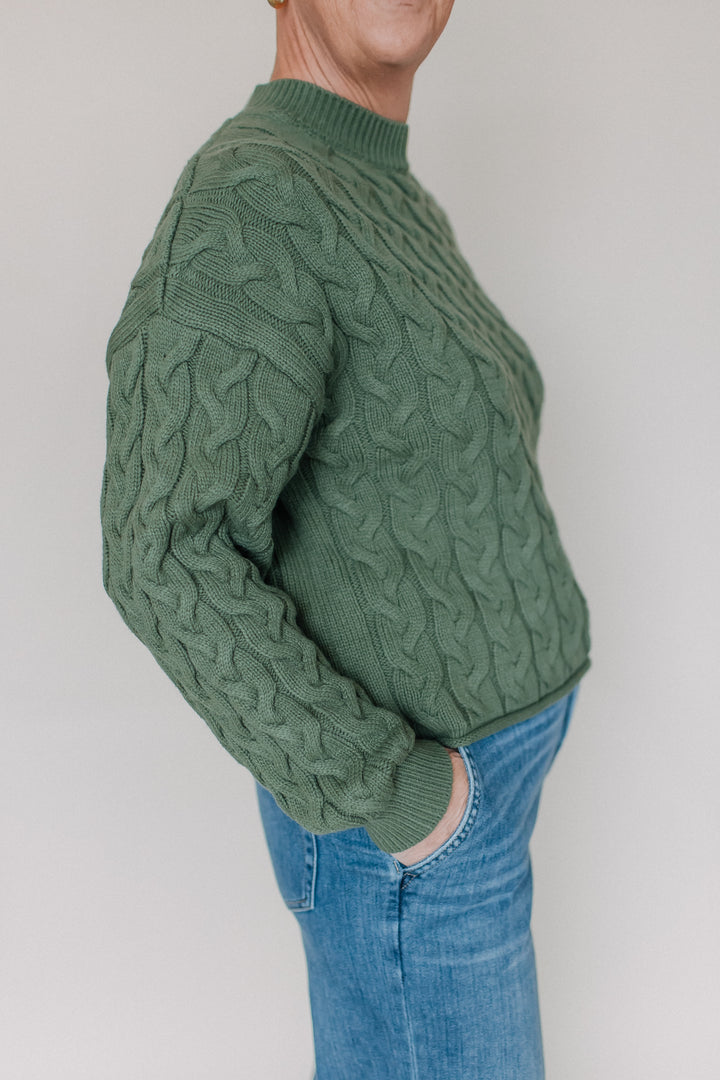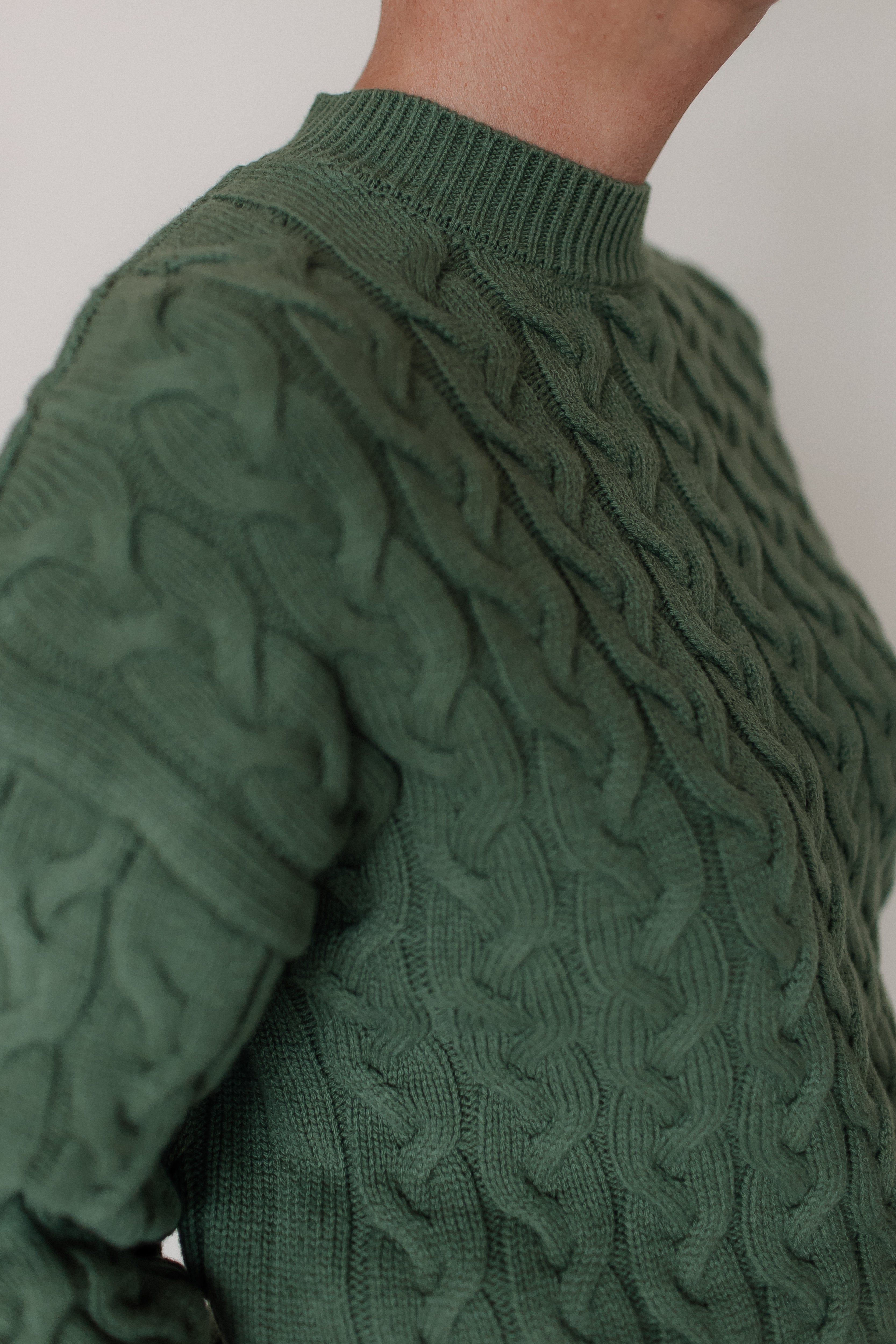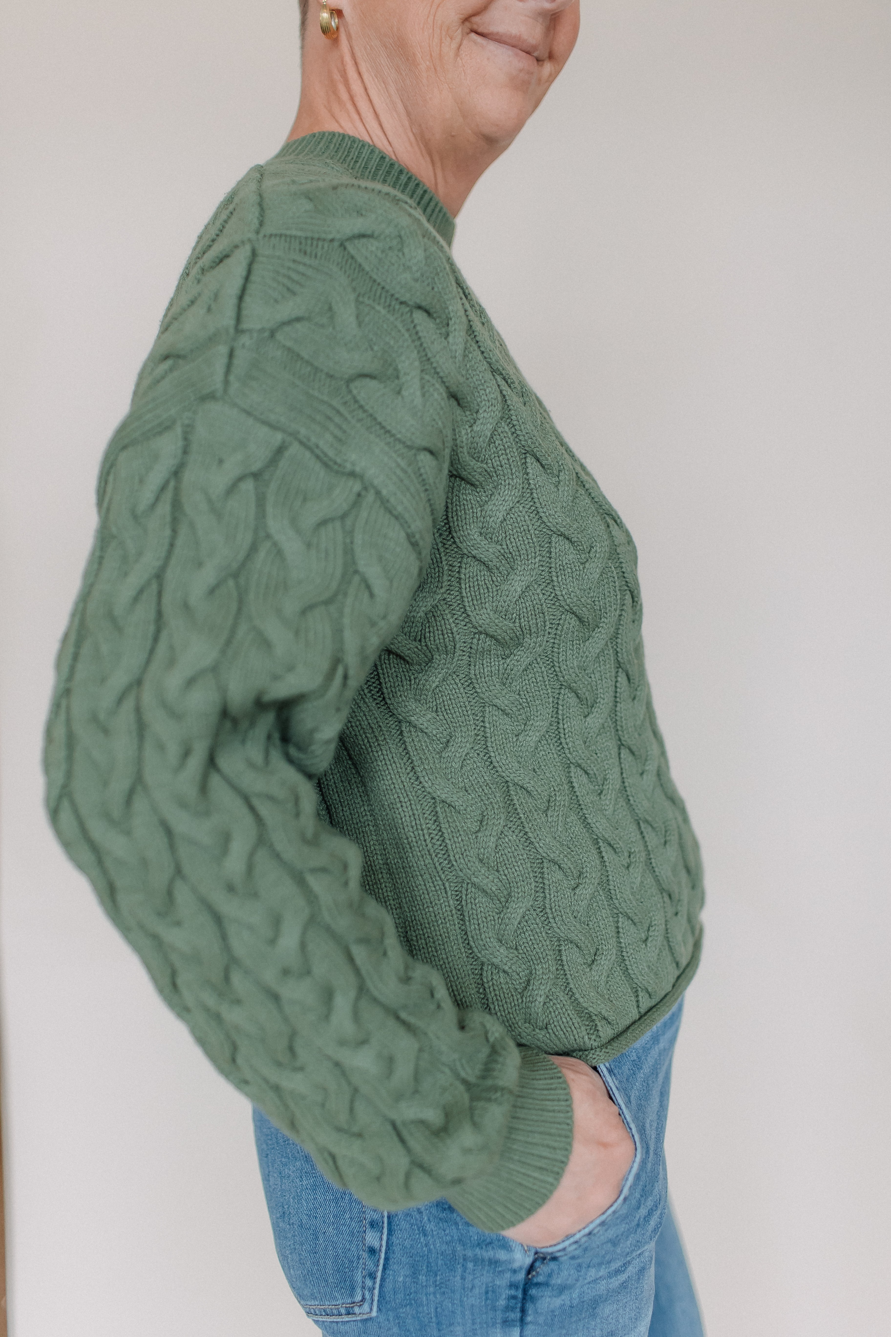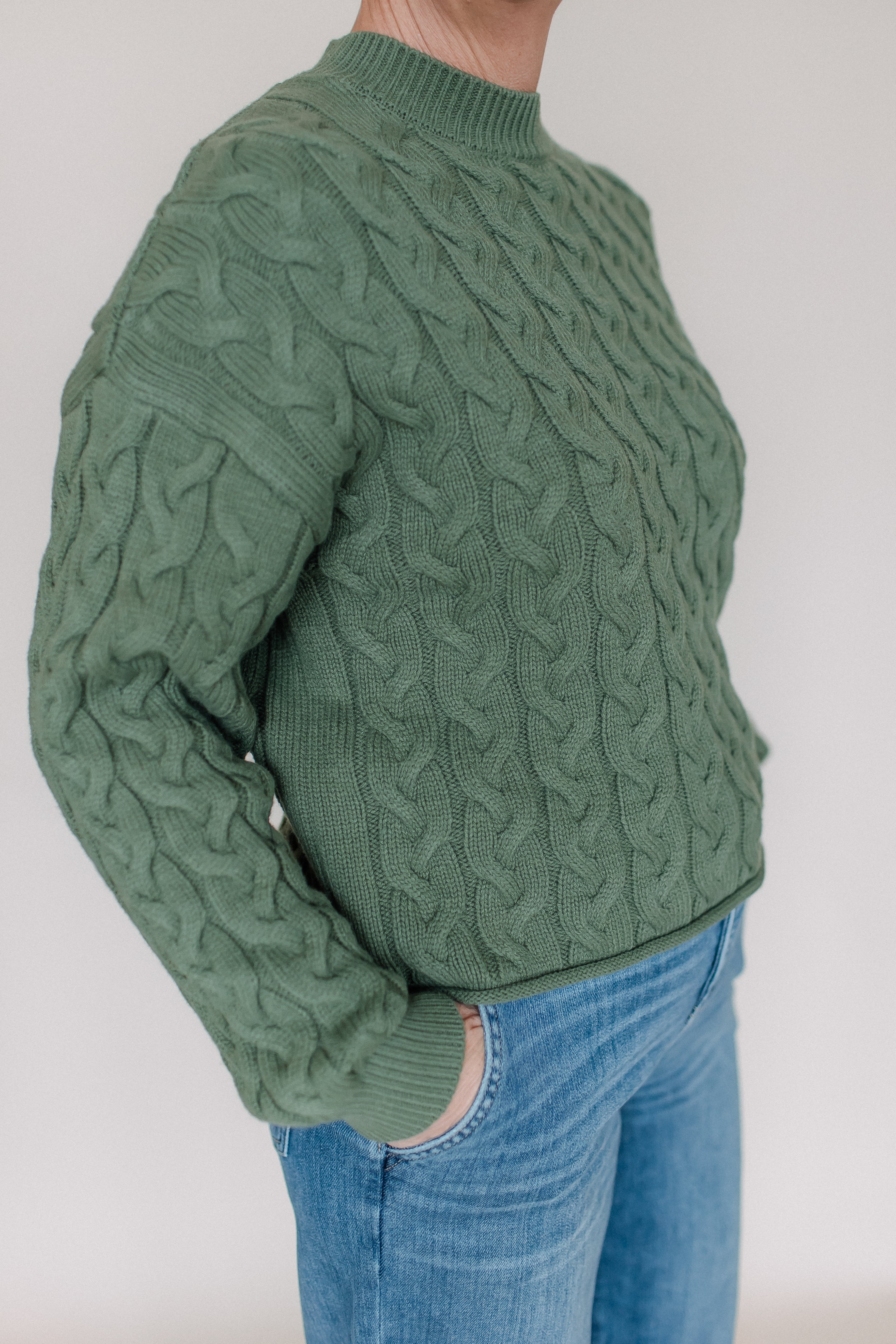 The Vertical Cable Sweater in Green by Apricot is a must-have for any fashion-forward individual. Made with a cotton mix, this sweater features a unique vertical cable design that adds texture and depth to your outfit. Stay warm and stylish with this timeless piece.